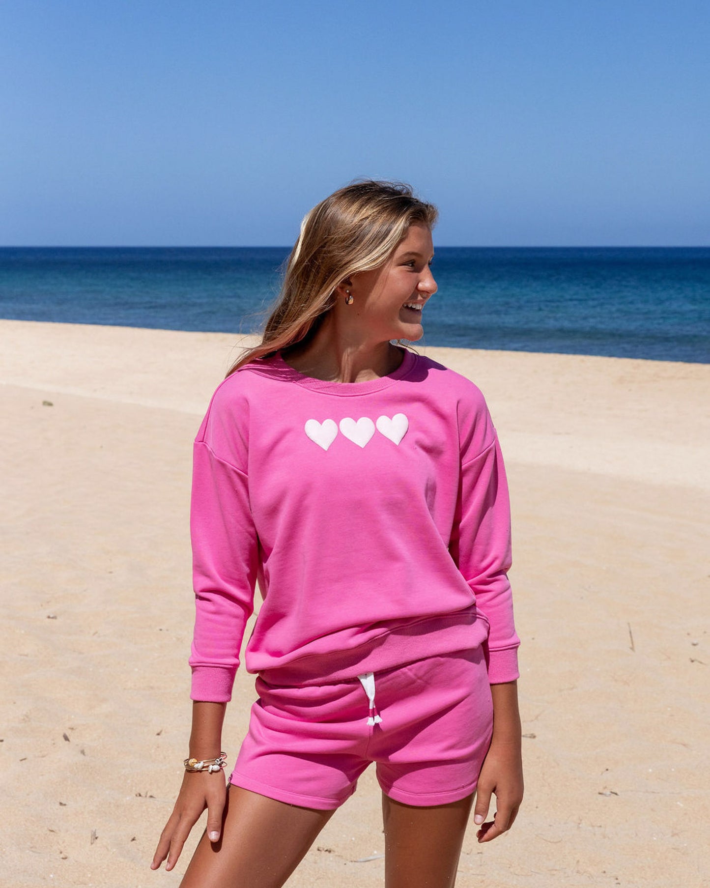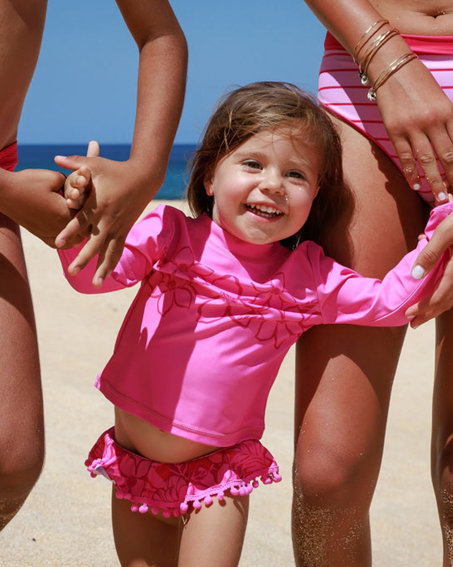 Meet the Feather 4 Arrow Love Collection. A mix of swimwear, dresses, sets, and accessories in pinks, reds, and heart prints—made for babies, boys, and girls. Easy pieces designed to mix and match.