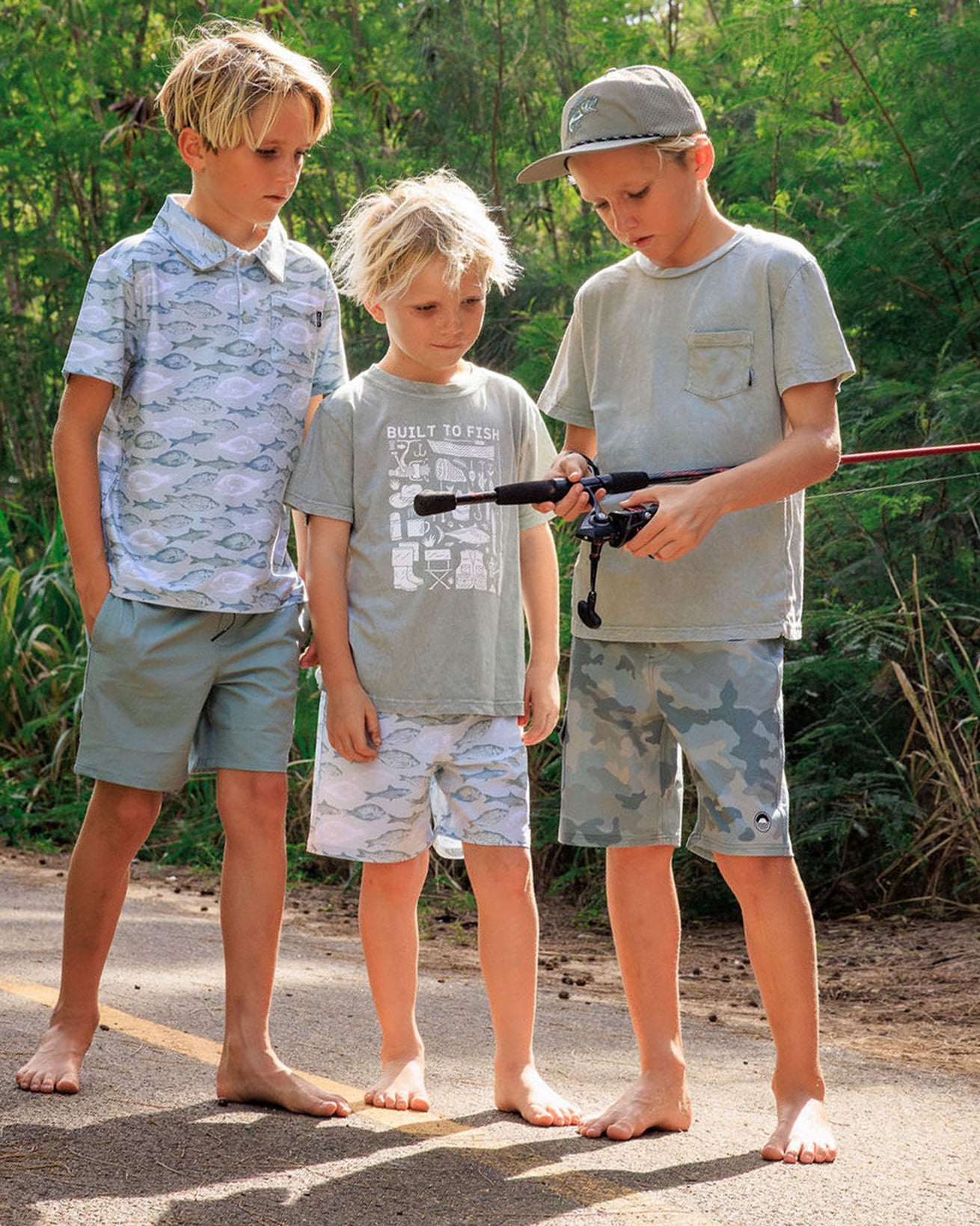 Fish-inspired swim, performance tech hoodies, polos, tees, hybrid shorts, and hats built for long days outside. Lightweight and functional - these are go-to pieces for young anglers and ocean lovers alike.
