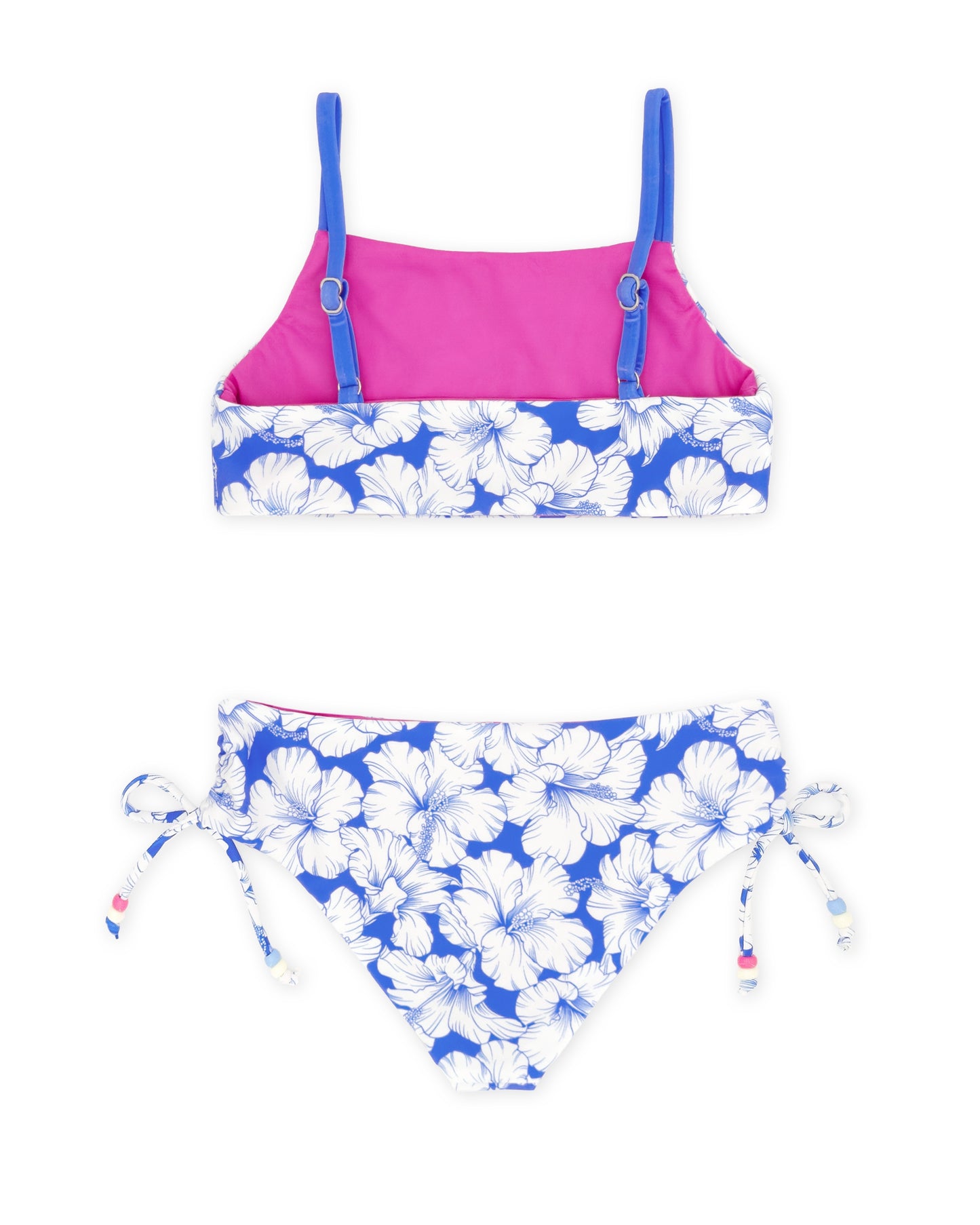 🌸 Design Detail – Adjustable ruched sides with playful beaded ties for the perfect fit and a pop of color.