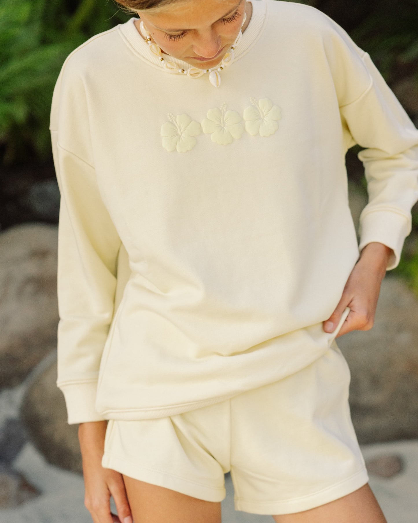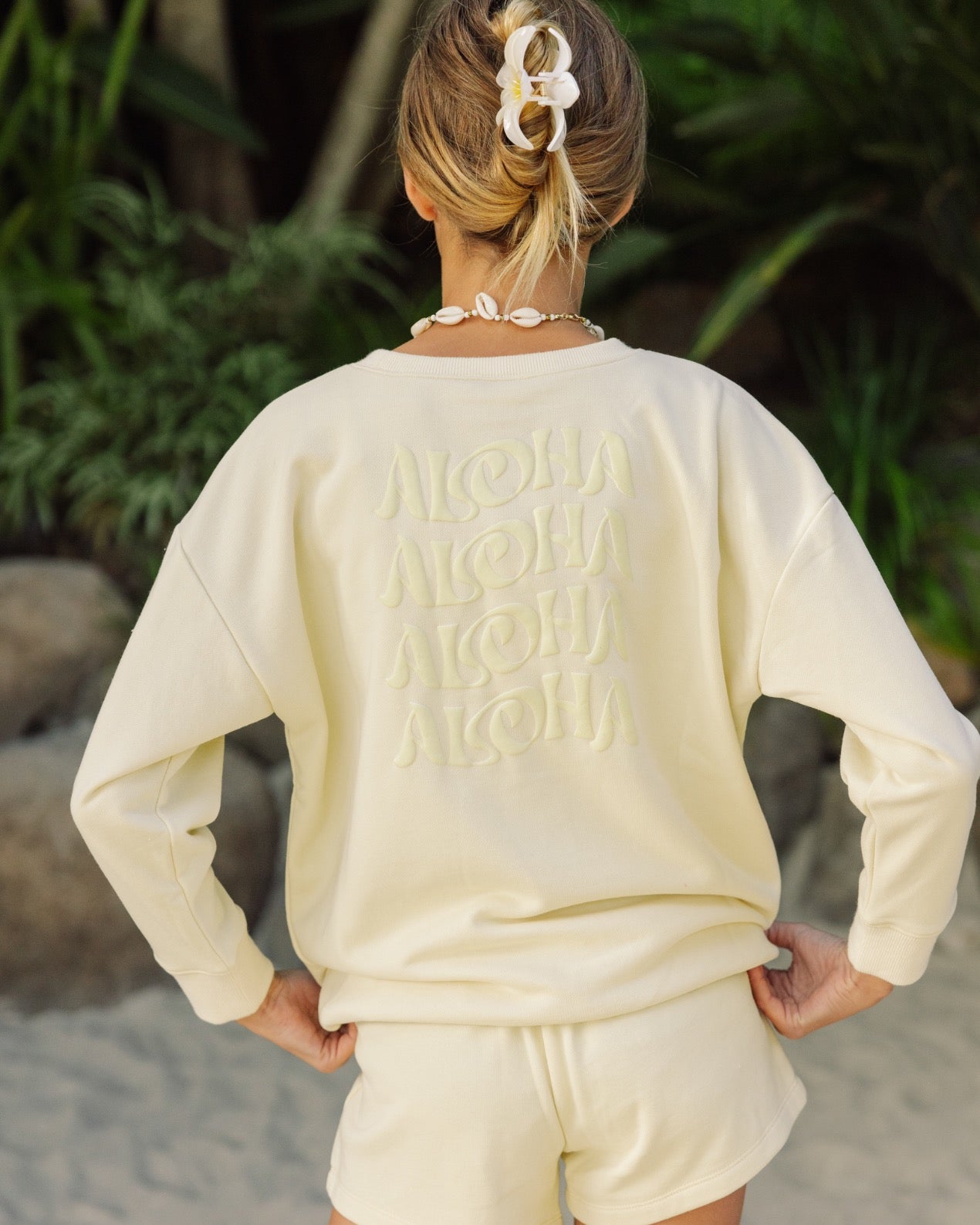🌸 Design Detail – This french terry sweatshirt has a cozy, mid-weight feel that’s perfect for cooler days. It features puff print hibiscus flowers at the center chest and “ALOHA” printed on the back in a fun, trendy puff print. Pairs perfectly with Weekend Sweatshort