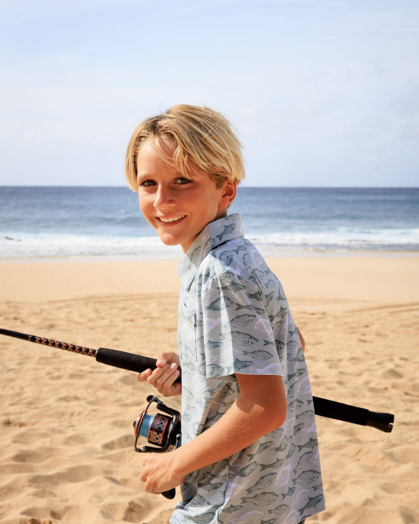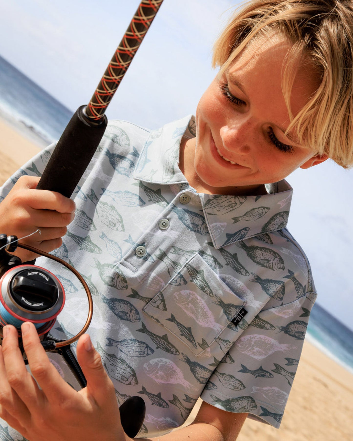 🎨 Prints and Colors – Available in "Fresh Catch" print in Sage Grey