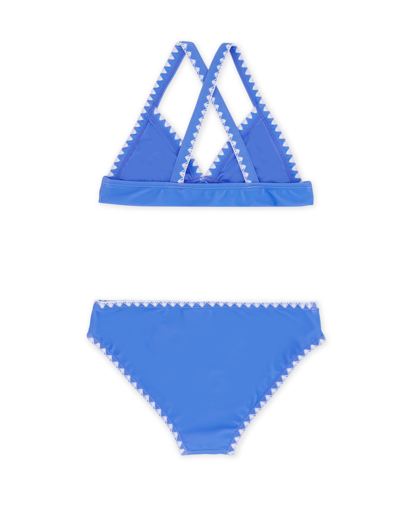 🌸 Design Detail – Triangle bikini top with criss-cross back straps for secure comfort and contrast white shell stitching for a fun, playful detail