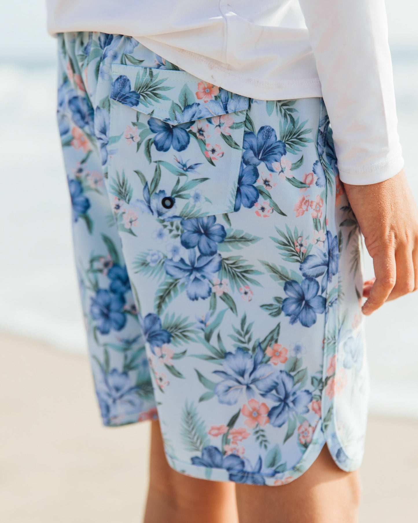🧵 Design Detail – Our scallop hem boardshort is designed with a functional velcro back pocket and an adjustable waistband for the perfect fit.