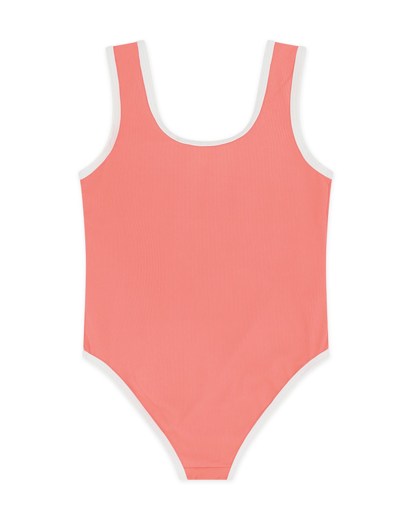 🌸 Design Detail – Ready for fun! Our retro inspired Wave Break One-Piece is crafted in a soft mini rib fabrication with contrast binding and sparkling sequin lettering.